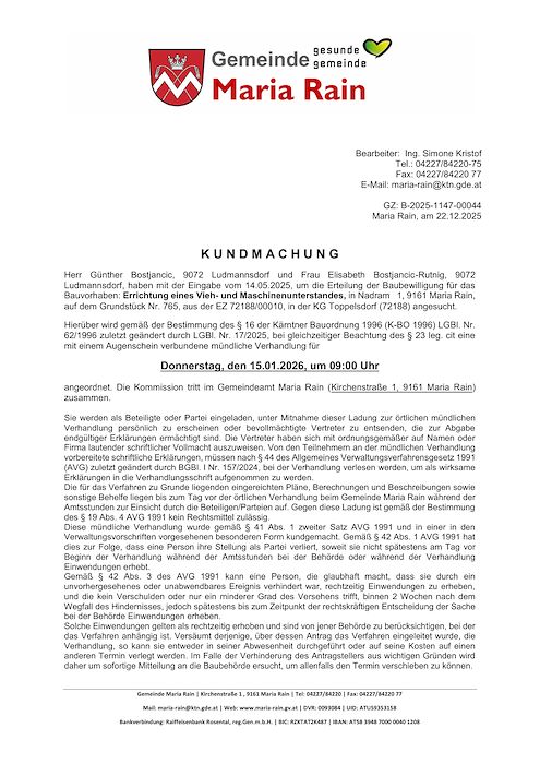 Bauverhandlung Bostjancic, am 15.01.2026