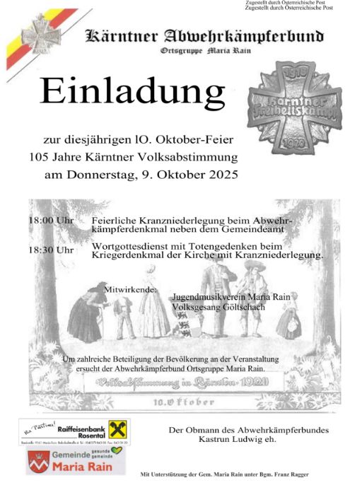 10. Oktober-Feier des Kärntner Abwehrkämpferbundes