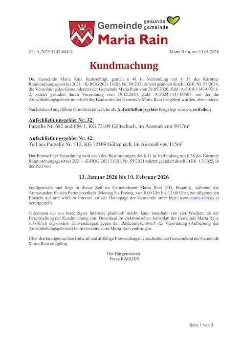 Kundmachung Aufhebung Aufschließungsgebiete 2025