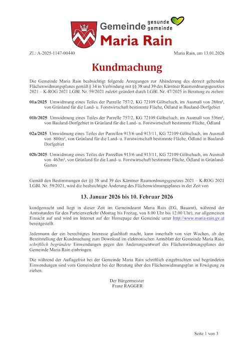 Kundmachung Umwidmungen 2025