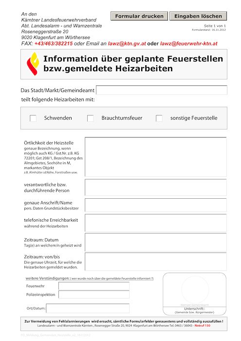 Das Brauchtumsfeuer wird ordnungsgemäß und unter Einhaltung aller gesetzlichen Bestimmungen abgehalten. Die entsprechende Meldung an die zuständige Gemeinde erfolgt fristgerecht mittels des vorgesehenen Formulars, spätestens vier Werktage vor dem Abbrennen.